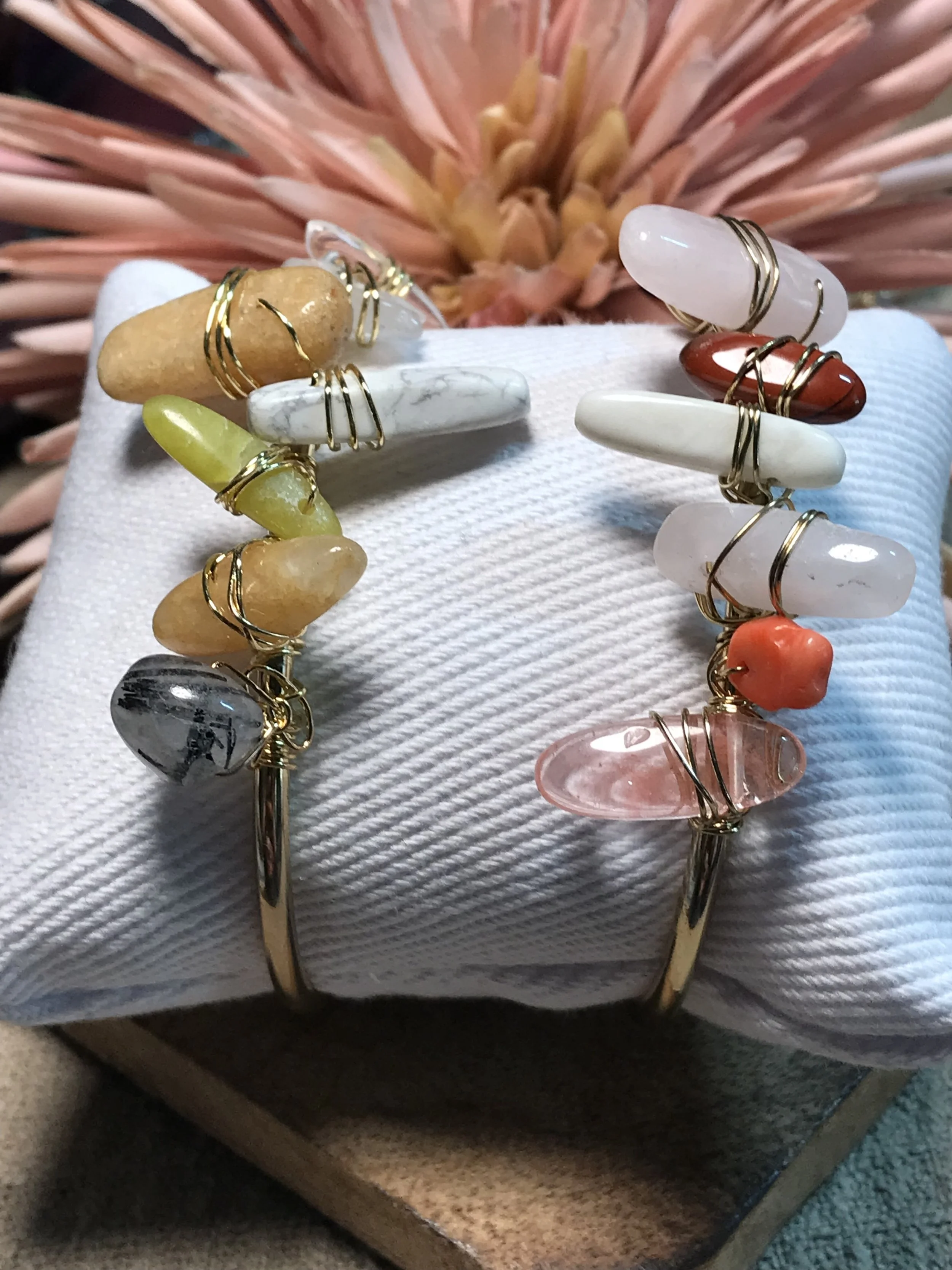 " “I have too many crystals”— said…no one EVER! Crystal & Stone Bangles Quartz "large stone" Bangles $43.00 Crystal Crescent Moon Bangles $38.00 Selenite Crystal Wand Bangles $35.00 Quartz Crystal Bangles from $33.00 Mixed Natural Stones Bangle $40.00